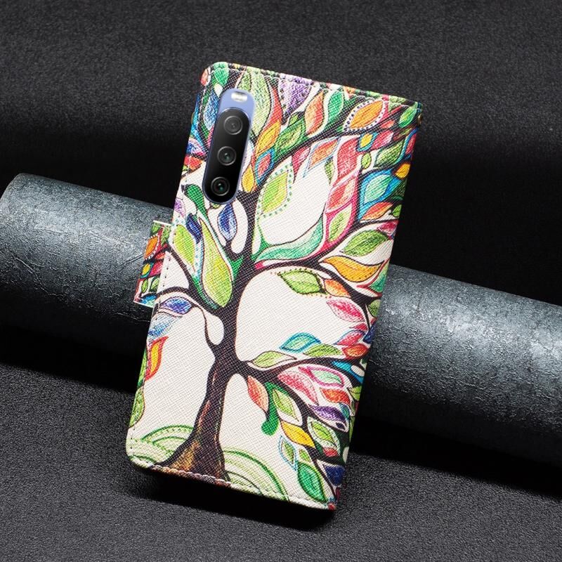 Θήκη τηλεφώνου δέρμα με οριζόντιο άνοιγμα και φερμουάρ για Sony Xperia 10 III με πολύχρωμο σχέδιο (Δέντρο)
