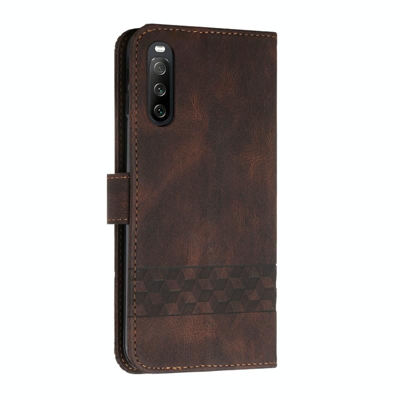Θήκη τηλεφώνου δερμάτινη, τύπου flip, για Sony Xperia 10 III Cubic Skin Feel (Σκούρο Καφέ)