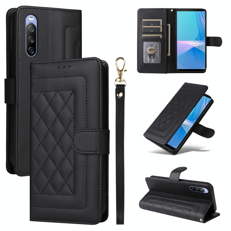 For Sony Xperia 10 III Diamond Lattice Leather Flip Phone Case(Black)