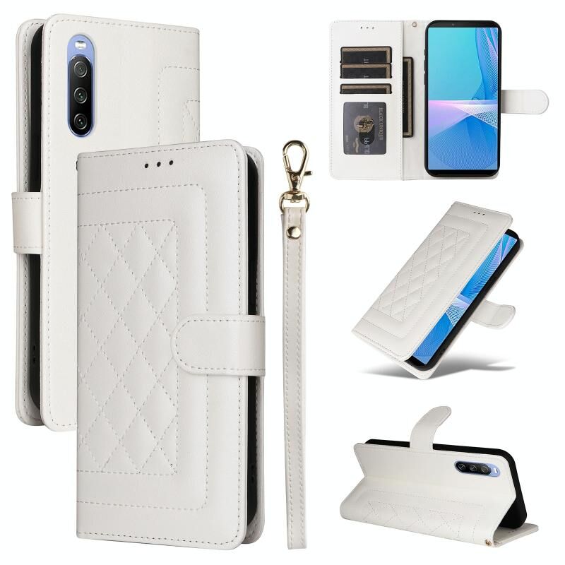 For Sony Xperia 10 III Diamond Lattice Leather Flip Phone Case(White)