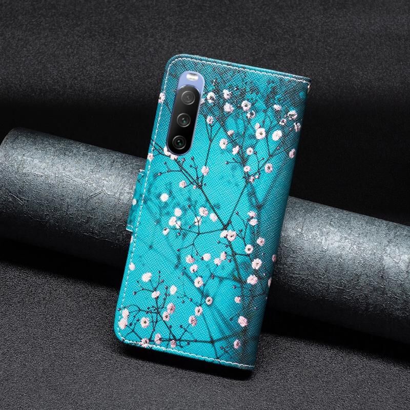 Θήκη τηλεφώνου από δέρμα με σχέδιο για Sony Xperia 10 III (Λουλούδι Δαμασκηνιάς)