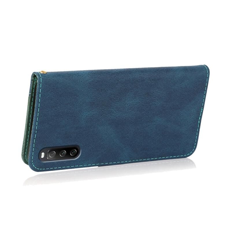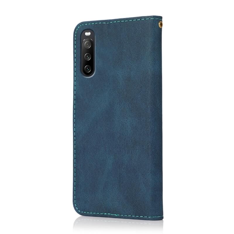 Για Sony Xperia 10 III Διπλό χρώμα ραφή δερμάτινη θήκη τηλεφώνου (μπλε πράσινο)