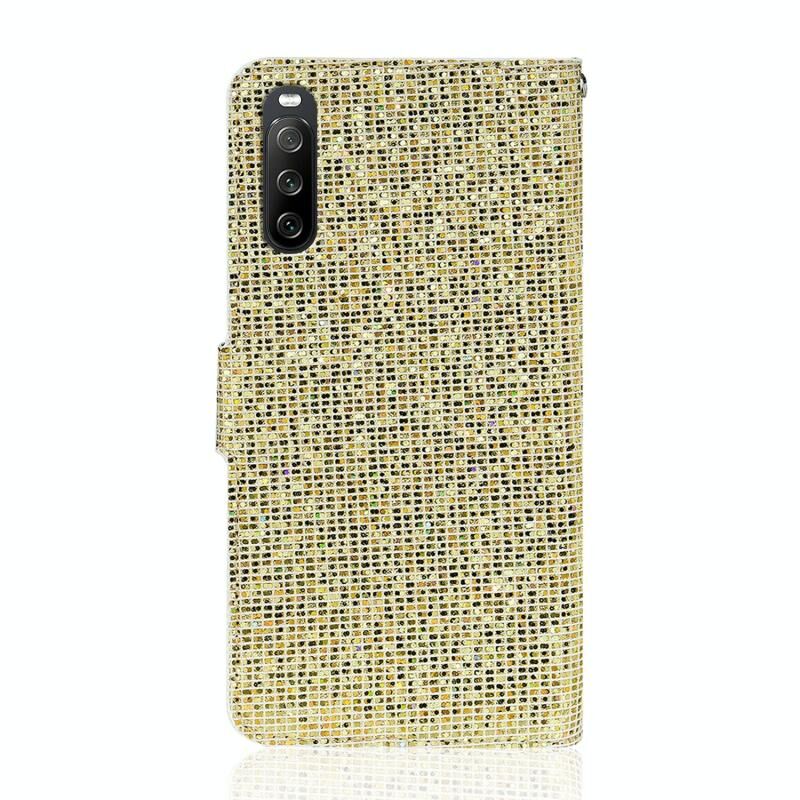 For Sony Xperia 10 III Glitter Powder Horizontal Flip Leather Case with Card Slots & Holder & Lanyard(Gold)