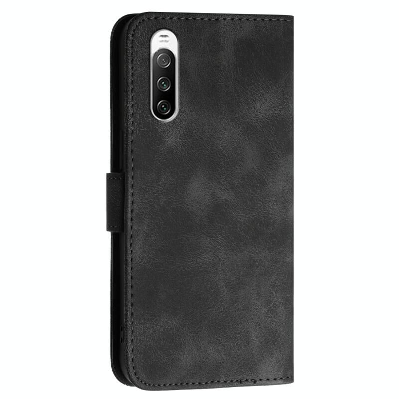 Θήκη τηλεφώνου από δέρμα με σχέδιο πεταλούδας σε πλέγμα, τύπου flip, για Sony Xperia 10 III με κορδόνι (Σκούρο Μπλε)