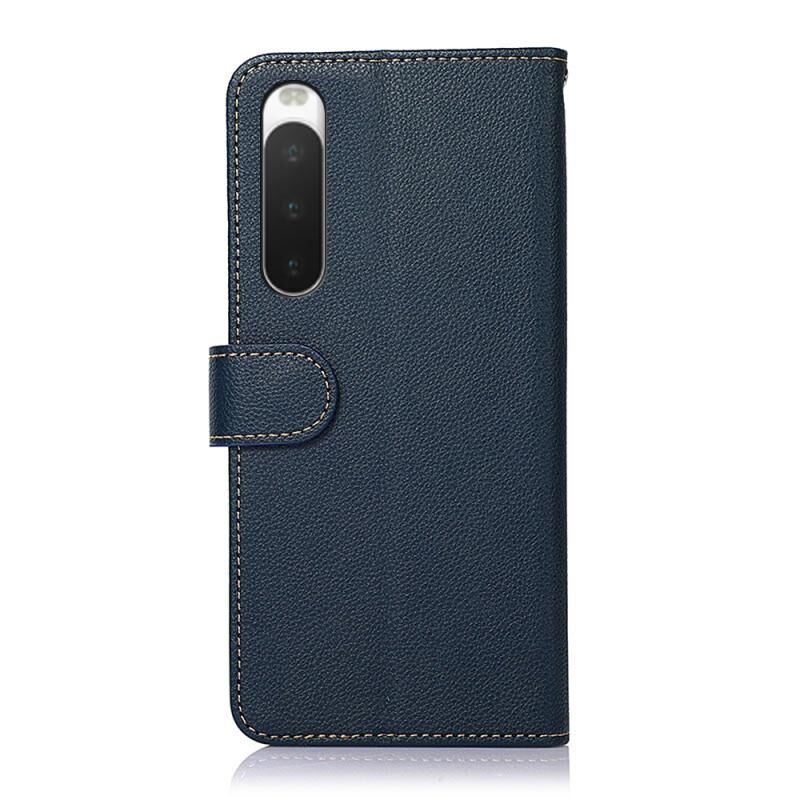 Θήκη κινητού τηλεφώνου Sony Xperia 10 III KHAZNEH με δέρμα υφής λύτσι και προστασία RFID (Μαύρο)