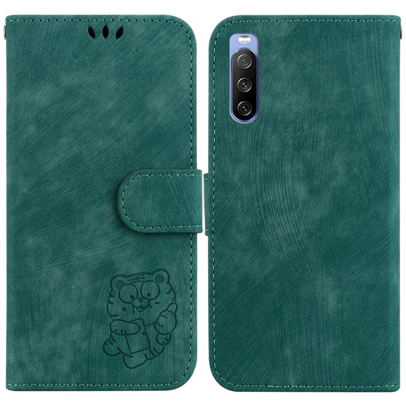 For Sony Xperia 10 III Little Tiger Embossed Leather Phone Case(Green)