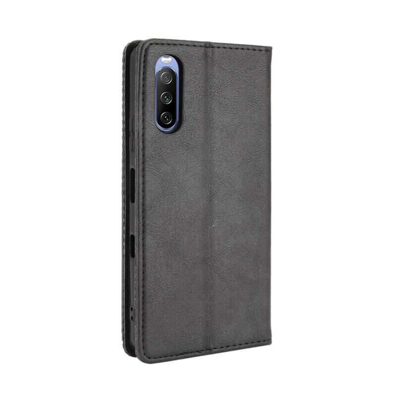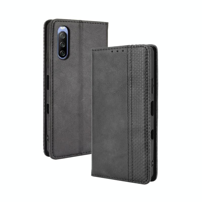 Για Sony Xperia 10 III Μαγνητική πόρπη Retro μοτίβο οριζόντια Flip δερμάτινη θήκη με υποδοχή & υποδοχή για κάρτες & πορτοφόλι (Μαύρο)