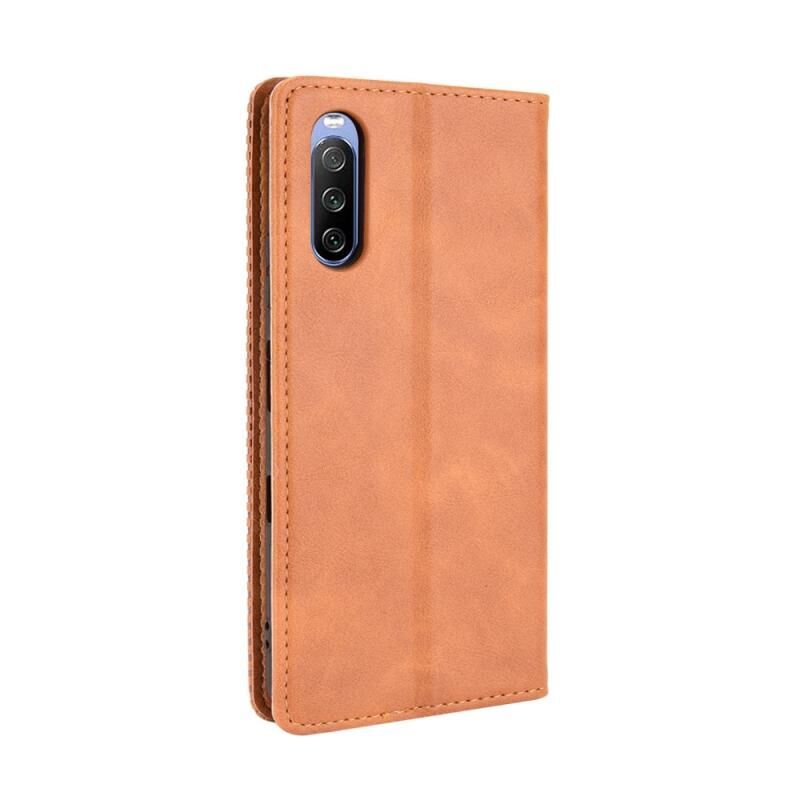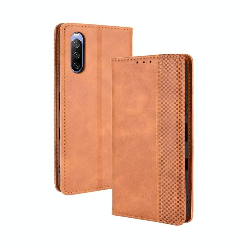 Για Sony Xperia 10 III Μαγνητική πόρπη Ρετρό μοτίβο οριζόντια Flip δερμάτινη θήκη με υποδοχή & υποδοχή για κάρτες & πορτοφόλι (καφέ)