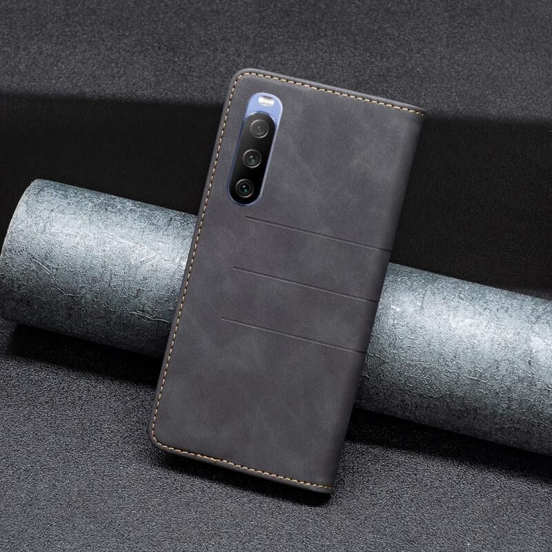 Για Sony Xperia 10 III Μαγνητική θήκη τηλεφώνου με δερμάτινη επένδυση (Μαύρο)
