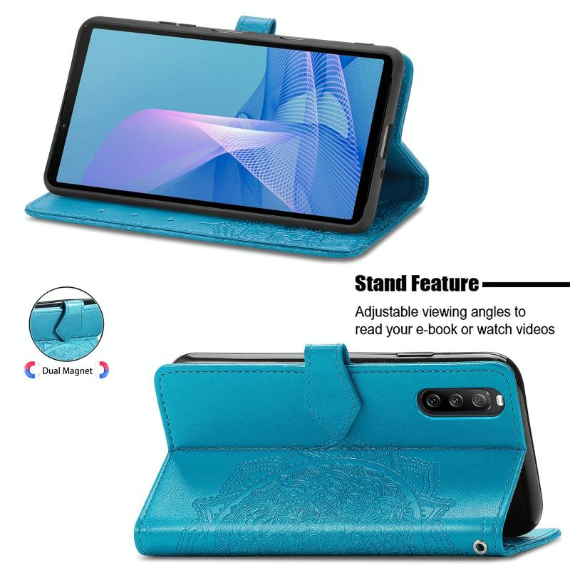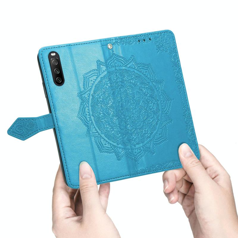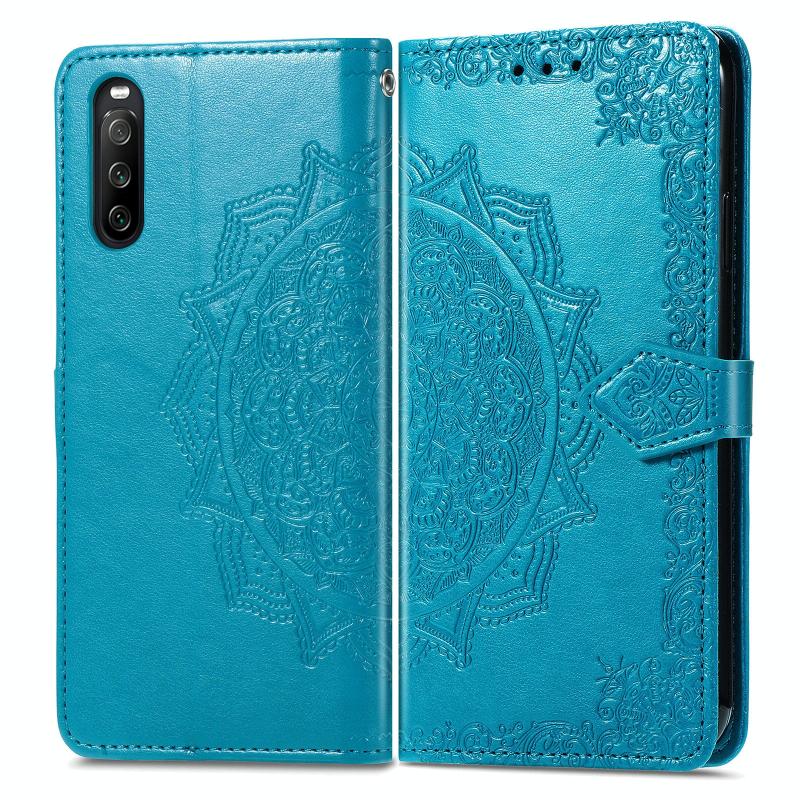 For Sony Xperia 10 III Mandala Embossing Pattern Horizontal Flip Leather Case with Holder & Card Slots & Wallet & Lanyard(Blue)