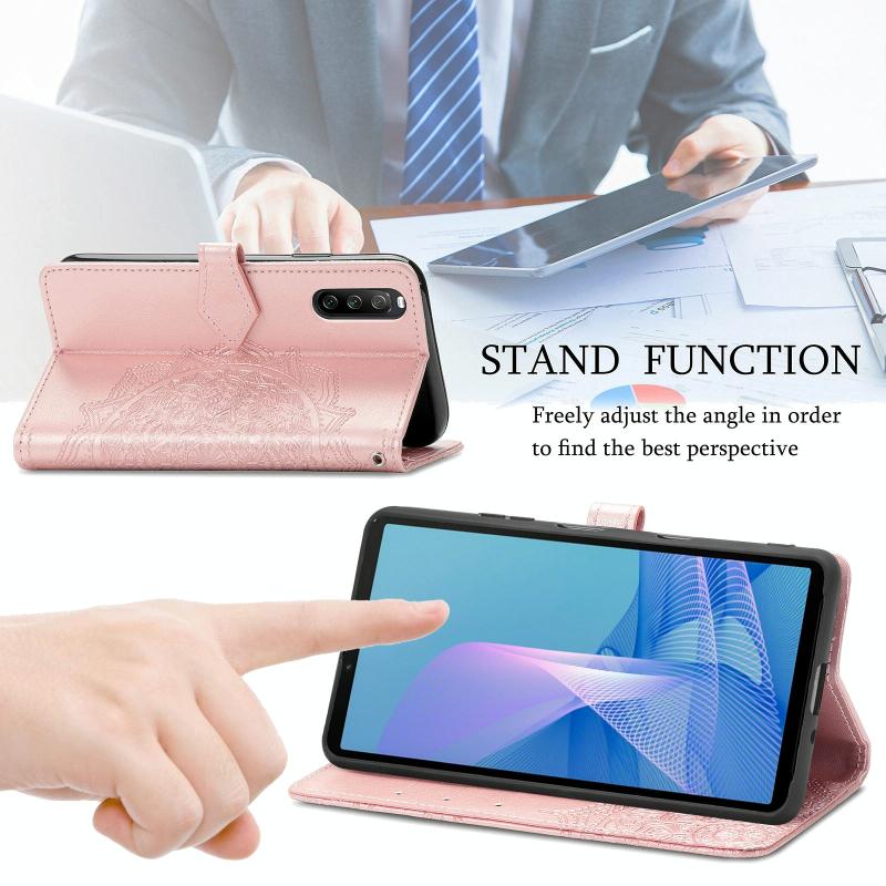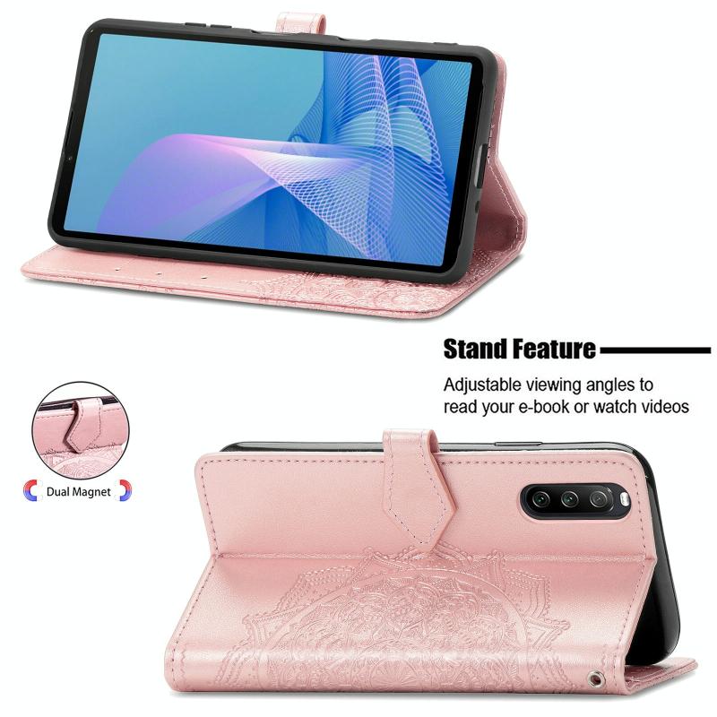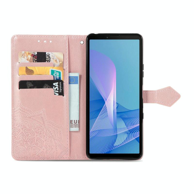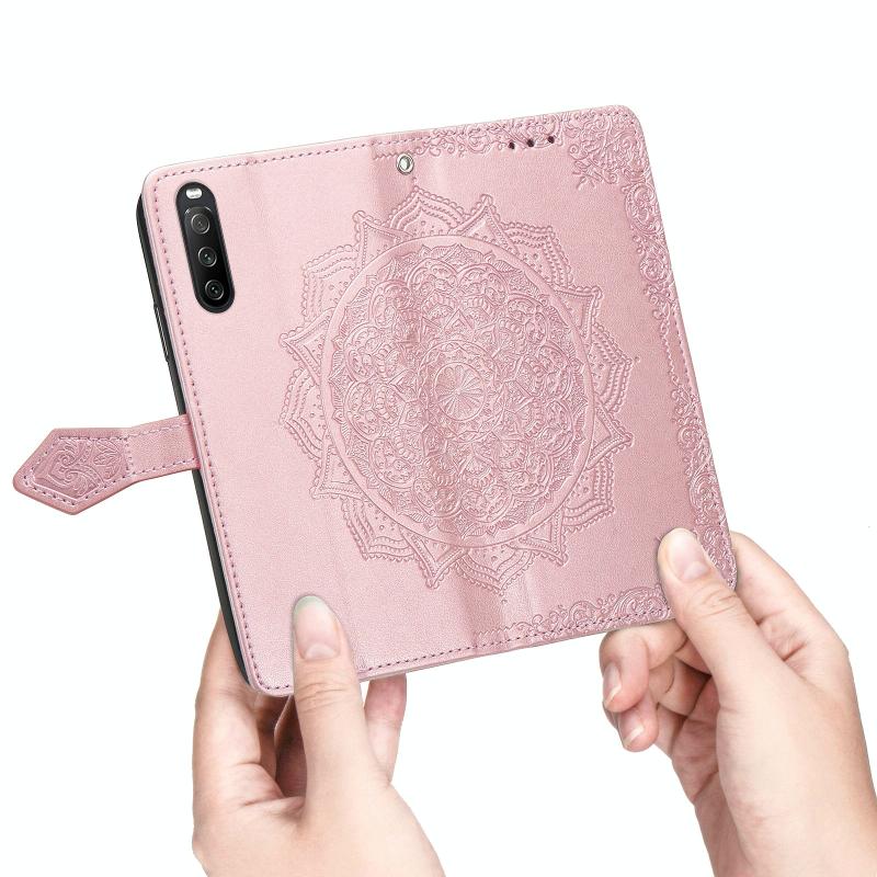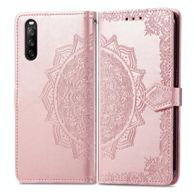 For Sony Xperia 10 III Mandala Embossing Pattern Horizontal Flip Leather Case with Holder & Card Slots & Wallet & Lanyard(Rose Gold)