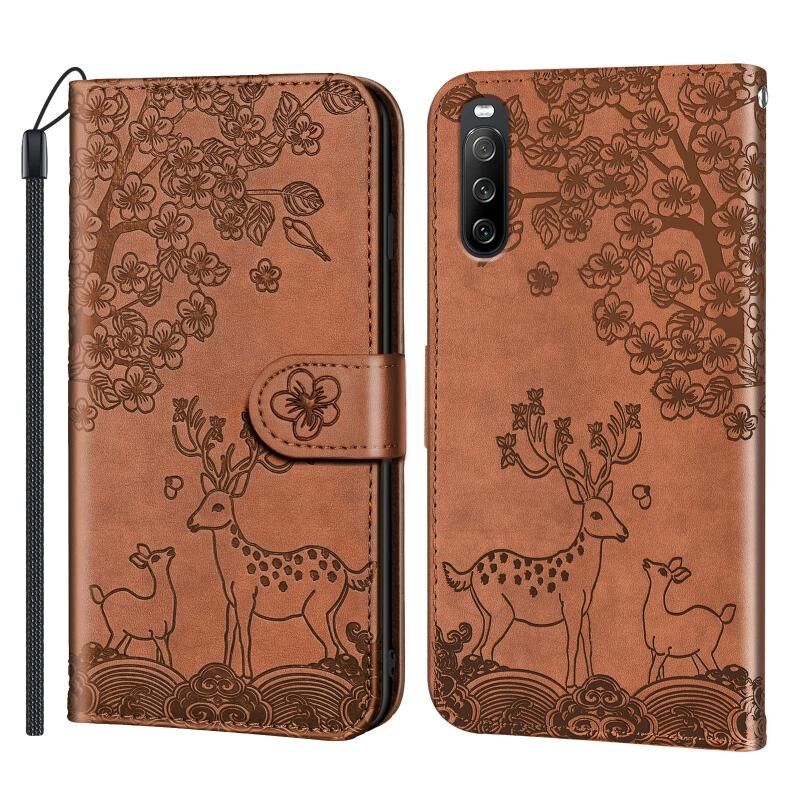 Για το Sony Xperia 10 III Sika Deer Embossing Pattern Horizontal Flip PU Leather Case με θήκη για κάρτες & υποδοχή & πορτοφόλι & κορνίζα φωτογραφιών (καφέ)