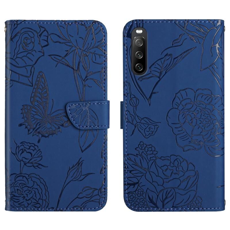Θήκη τηλεφώνου από δέρμα με ανάγλυφο σχέδιο πεταλούδας και παιώνιας για Sony Xperia 10 III (Κόκκινο)