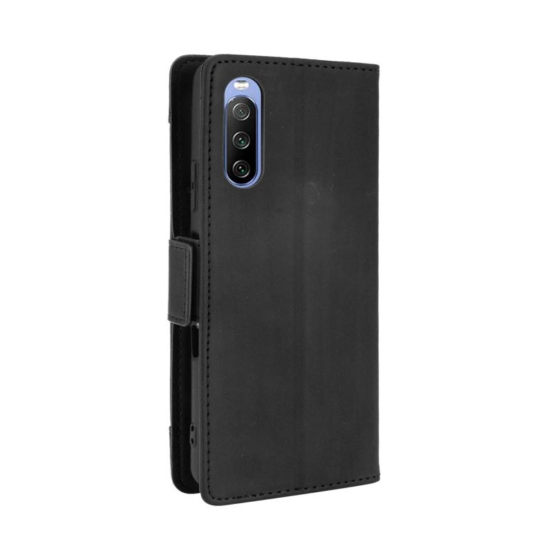 For Sony Xperia 10 III Skin Feel Calf Pattern Horizontal Flip Leather Case with Holder & Card Slots & Photo Frame(Black)
