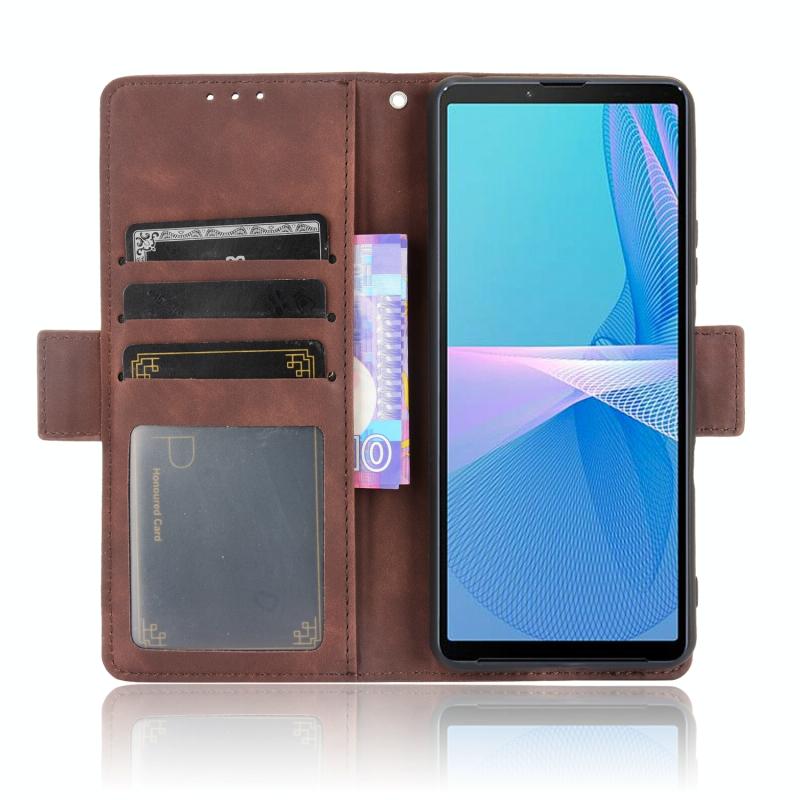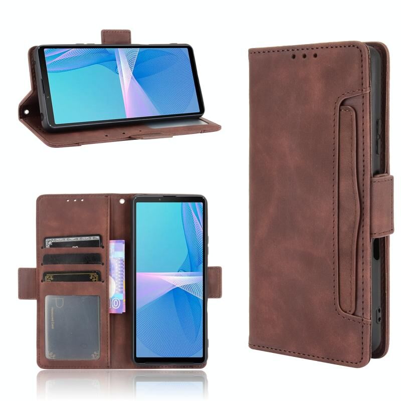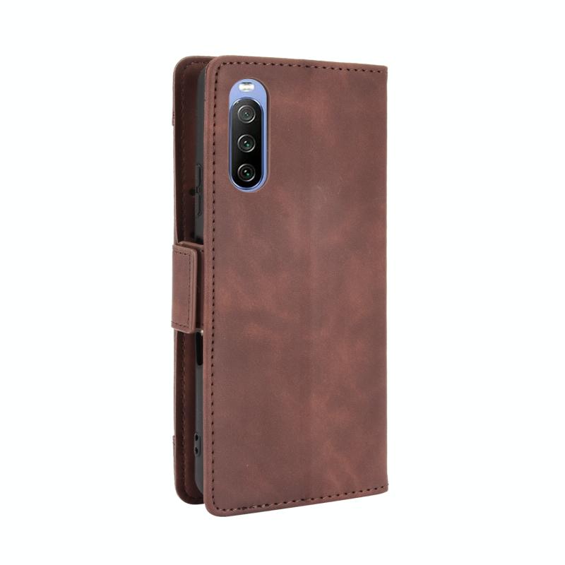 For Sony Xperia 10 III Skin Feel Calf Pattern Horizontal Flip Leather Case with Holder & Card Slots & Photo Frame(Brown)