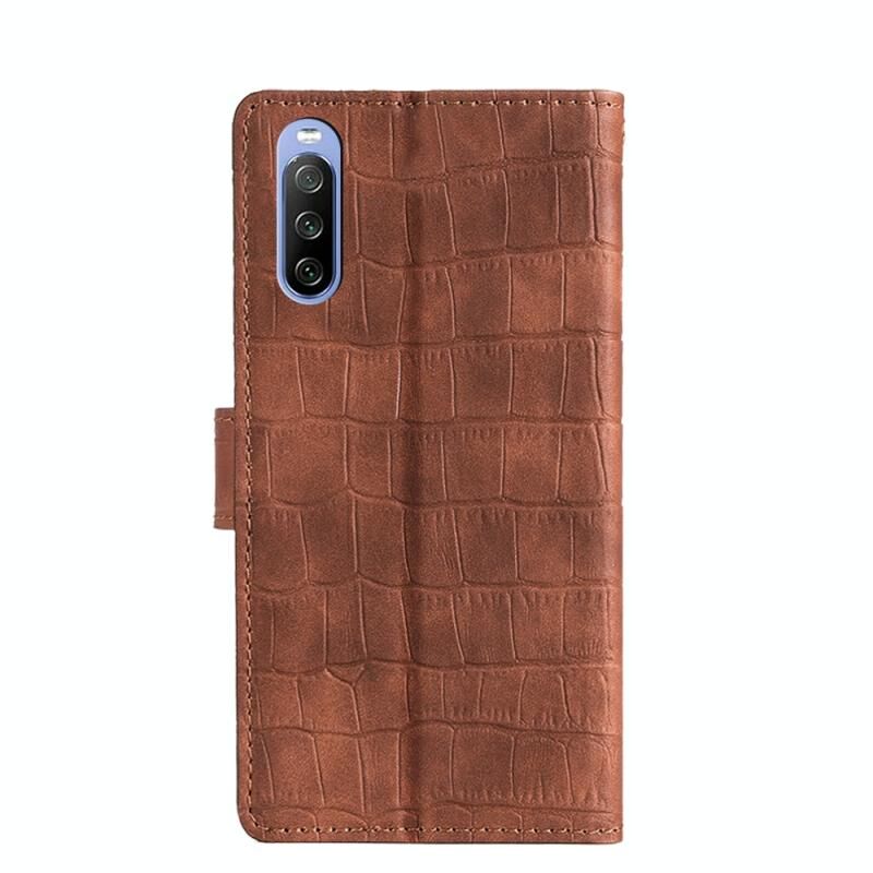 For Sony Xperia 10 III Skin Feel Crocodile Texture Magnetic Clasp Horizontal Flip PU Leather Case with Holder & Card Slots & Wallet(Brown)