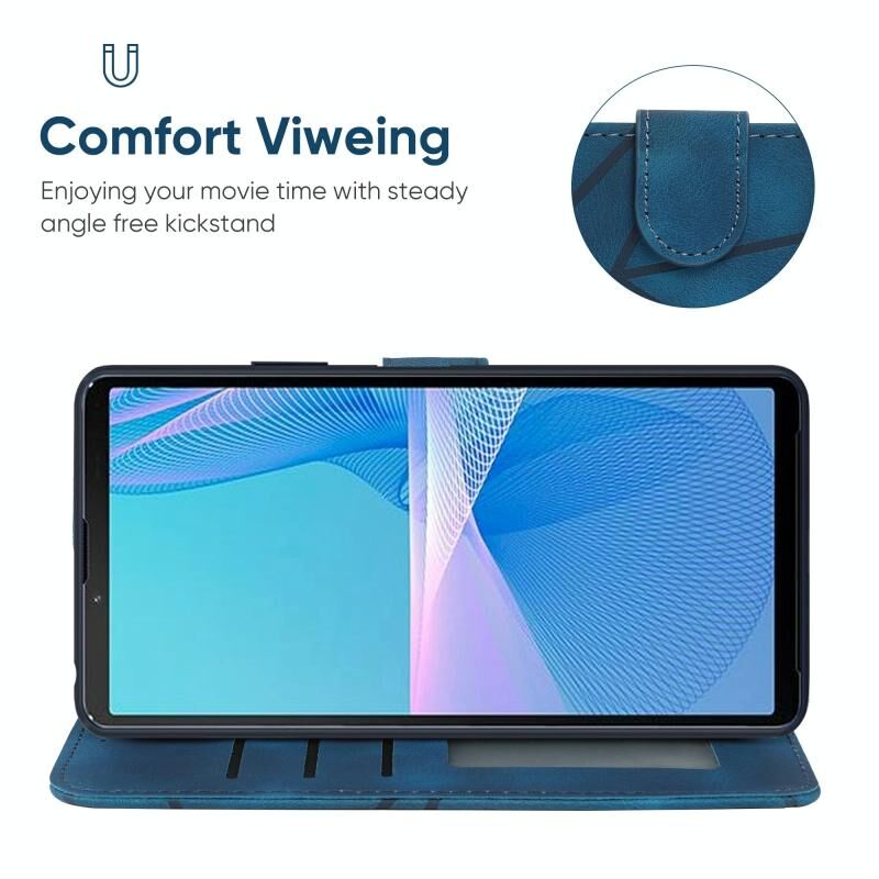 Για το Sony Xperia 10 III Skin Feel Geometric Lines Δερμάτινη θήκη τηλεφώνου (μπλε)