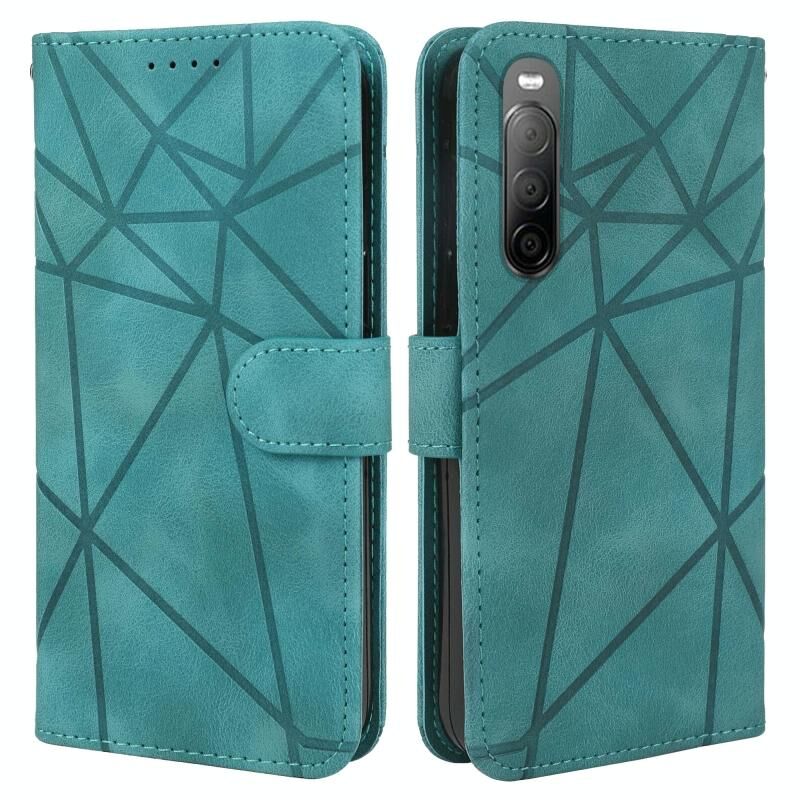 Για το Sony Xperia 10 III Skin Feel Γεωμετρικές γραμμές δερμάτινη θήκη τηλεφώνου (πράσινο)