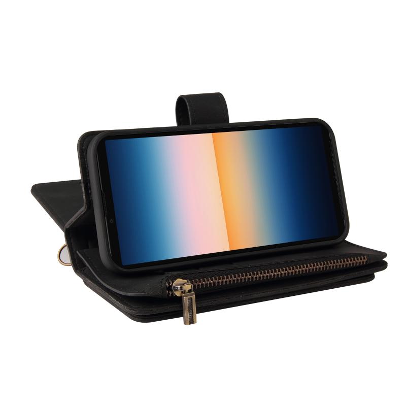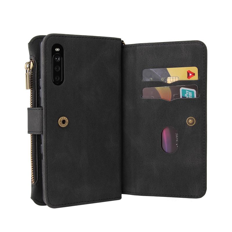 For Sony Xperia 10 III Skin Feel PU + TPU Horizontal Flip Leather Case With Holder & 15 Cards Slot & Wallet & Zipper Pocket & Lanyard(Black)