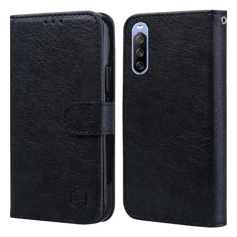 For Sony Xperia 10 III Skin Feeling Oil Leather Texture PU + TPU Phone Case(Black)
