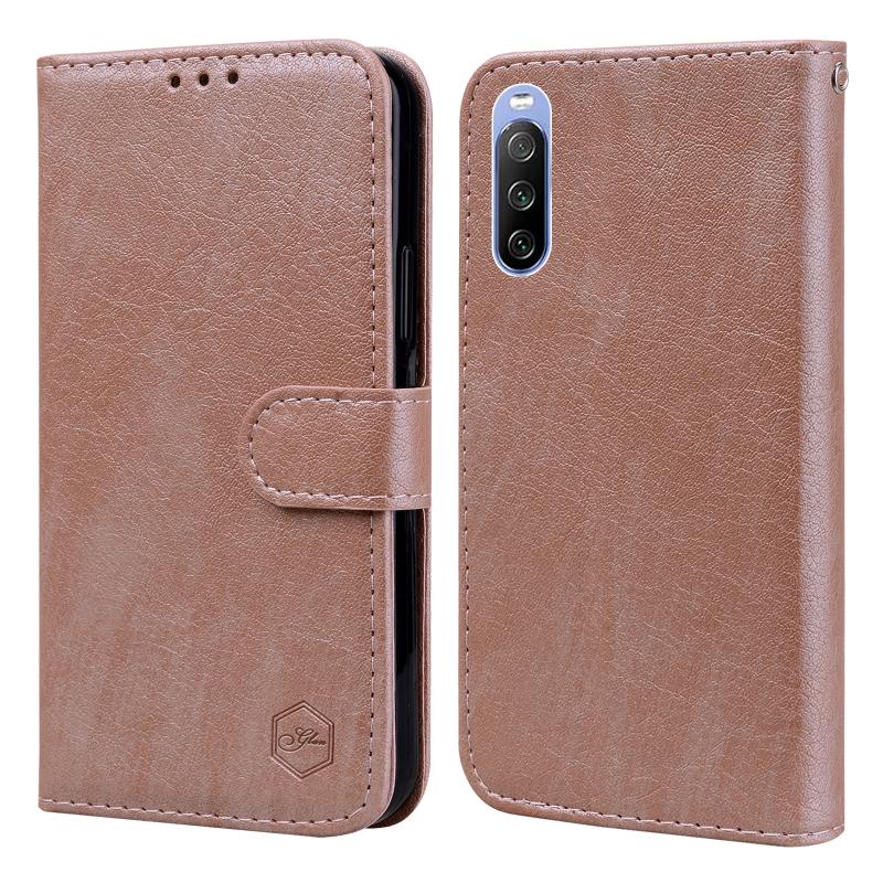 For Sony Xperia 10 III Skin Feeling Oil Leather Texture PU + TPU Phone Case(Champagne)