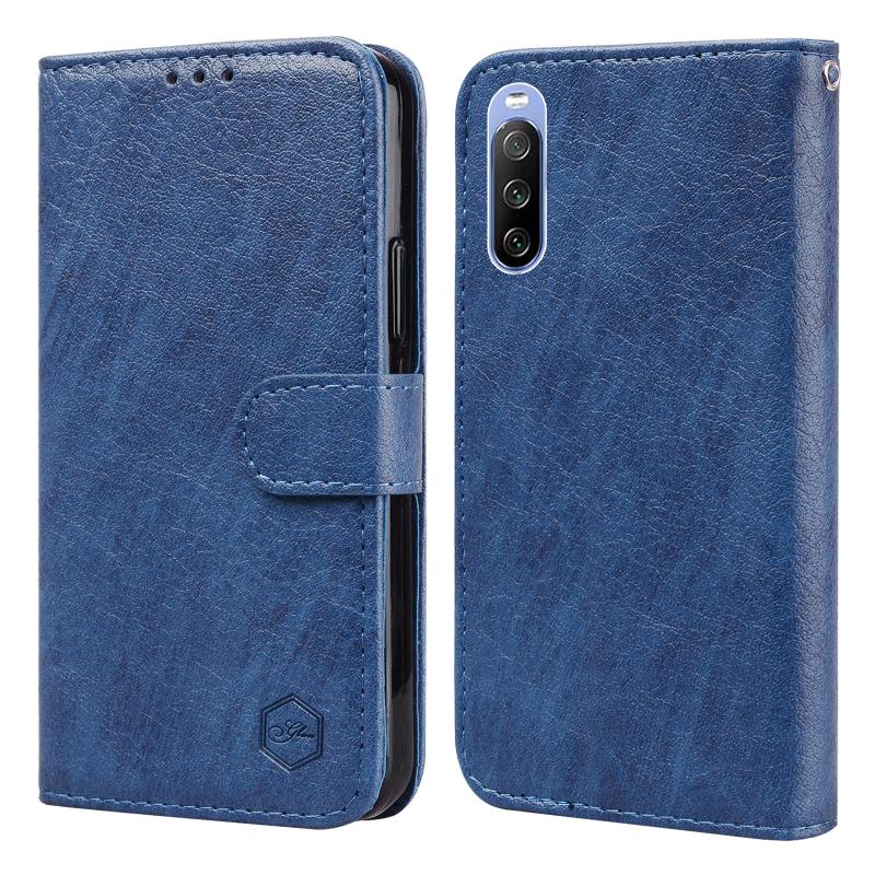 For Sony Xperia 10 III Skin Feeling Oil Leather Texture PU + TPU Phone Case(Dark Blue)
