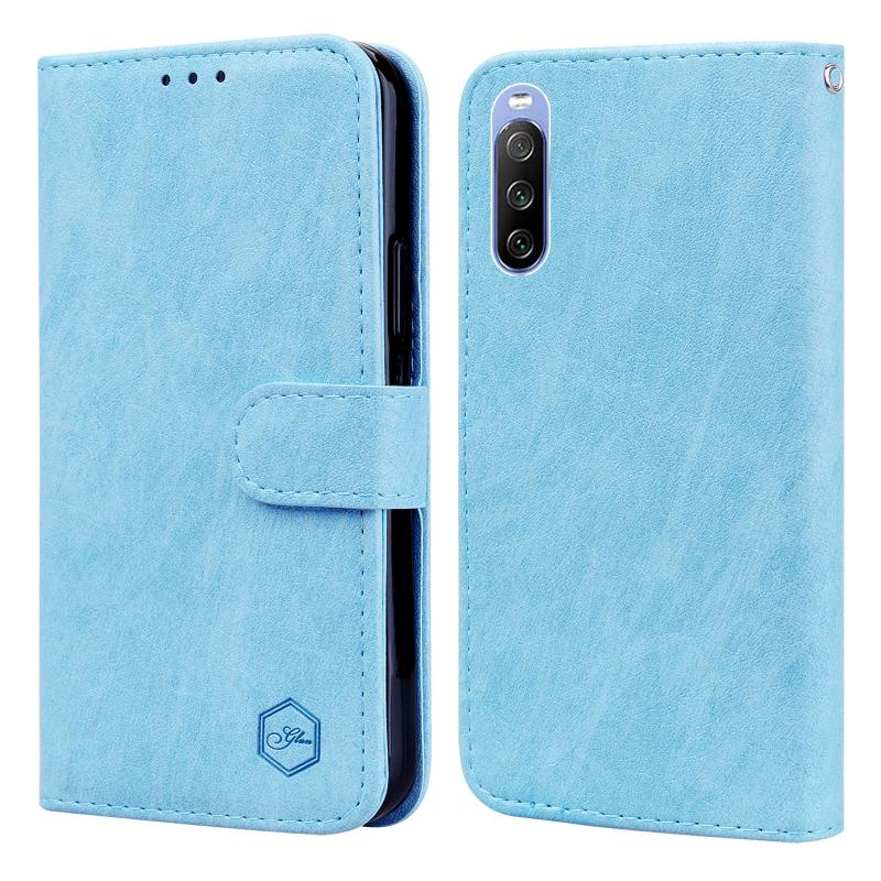 For Sony Xperia 10 III Skin Feeling Oil Leather Texture PU + TPU Phone Case(Light Blue)