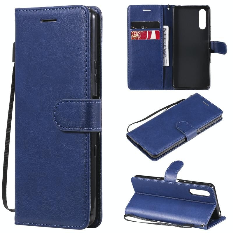 For Sony Xperia 10 III Solid Color Horizontal Flip Protective Leather Case with Holder & Card Slots & Wallet & Photo Frame & Lanyard(Blue)
