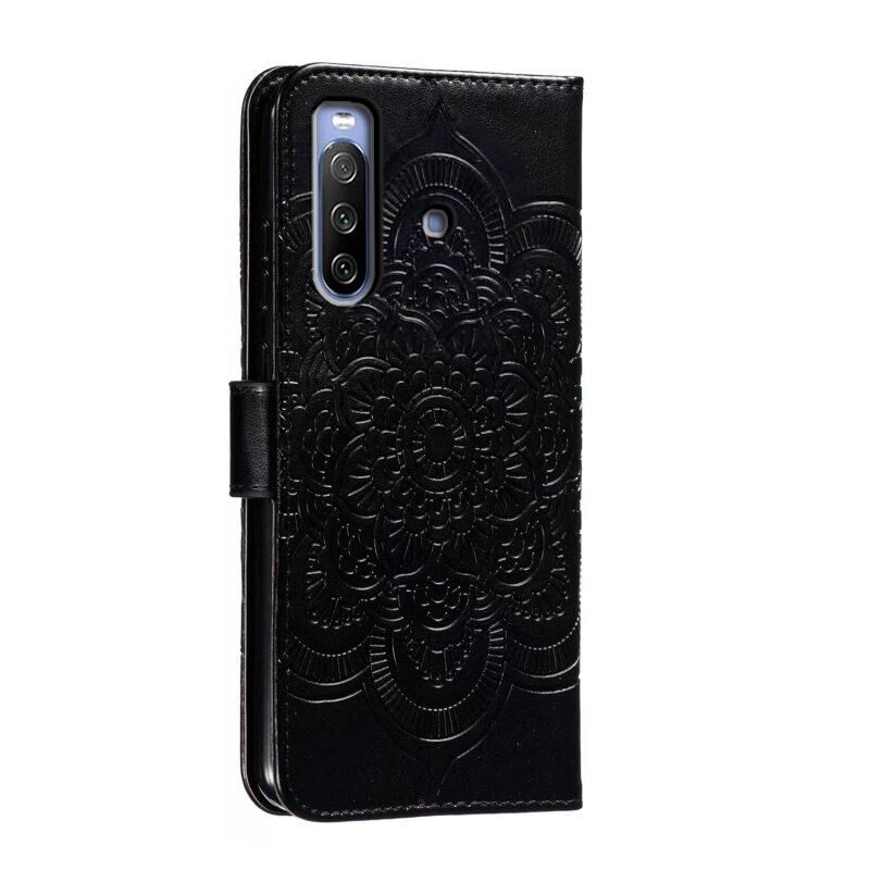 Για Sony Xperia 10 III Sun Mandala ανάγλυφο μοτίβο τηλέφωνο δερμάτινη θήκη (μαύρο)