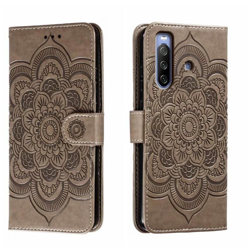 Για Sony Xperia 10 III Sun Mandala ανάγλυφο μοτίβο τηλέφωνο δερμάτινη θήκη (γκρι)