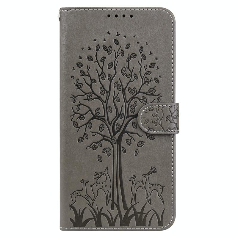 For Sony Xperia 10 III Tree & Deer Pattern Pressed Flip Leather Phone Case(Grey)