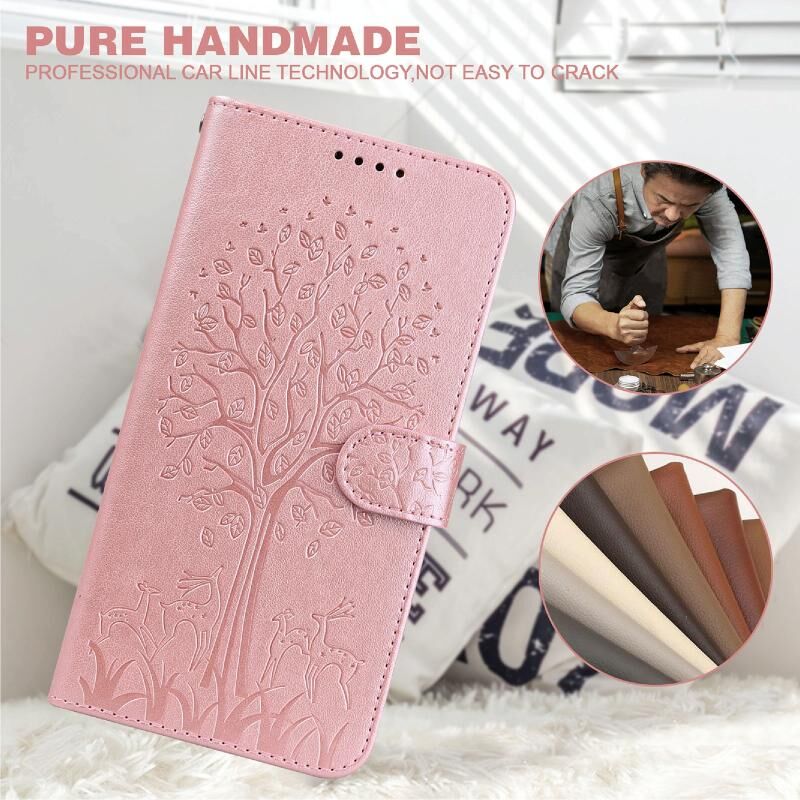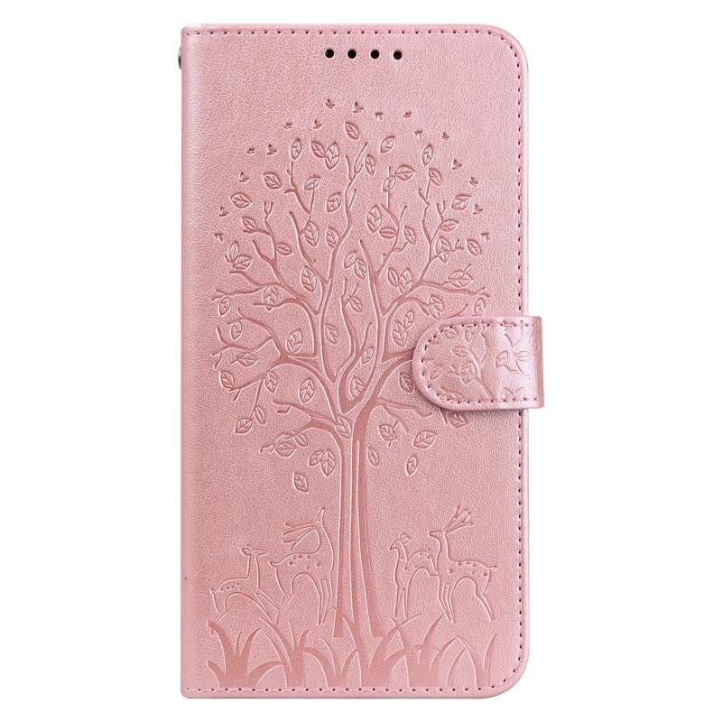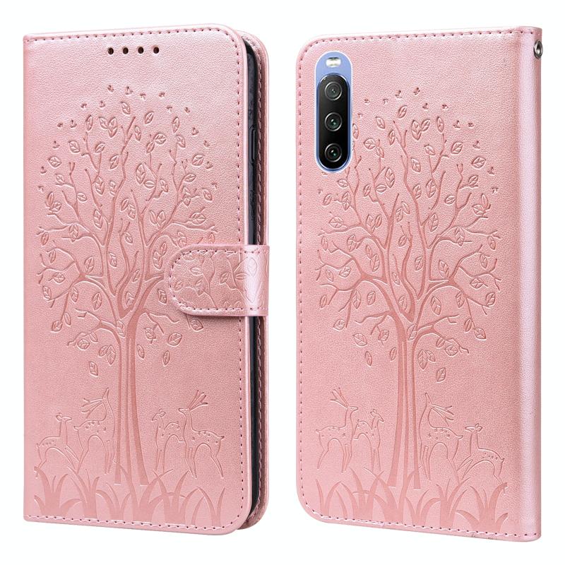 For Sony Xperia 10 III Tree & Deer Pattern Pressed Flip Leather Phone Case(Pink)