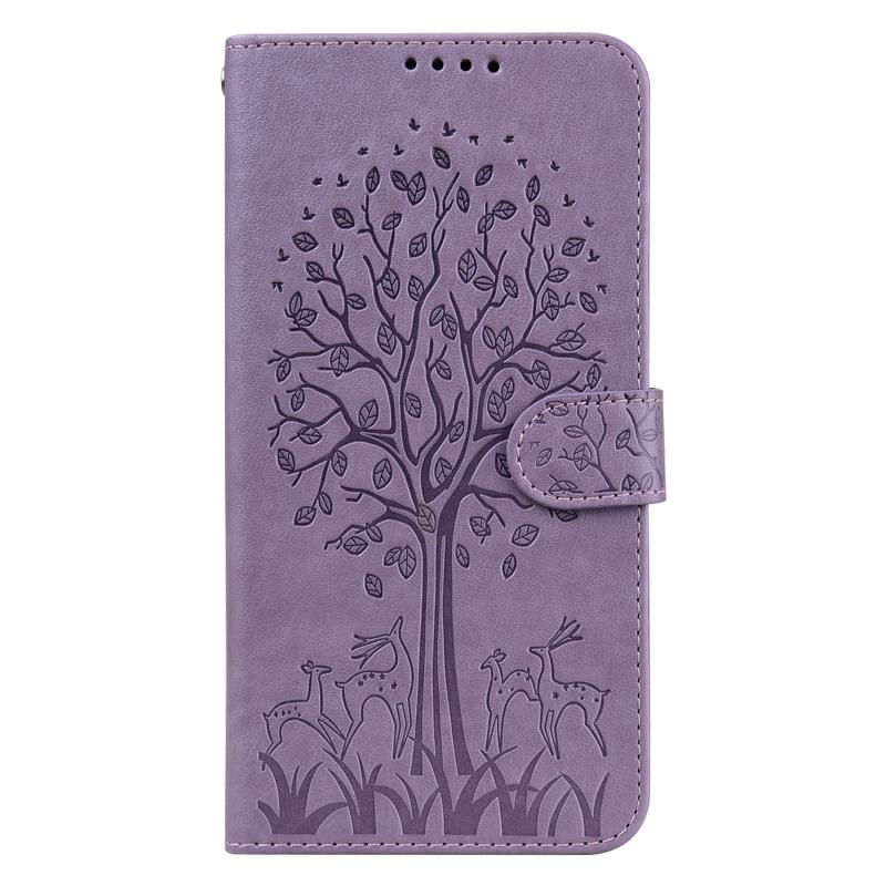 For Sony Xperia 10 III Tree & Deer Pattern Pressed Flip Leather Phone Case(Purple)