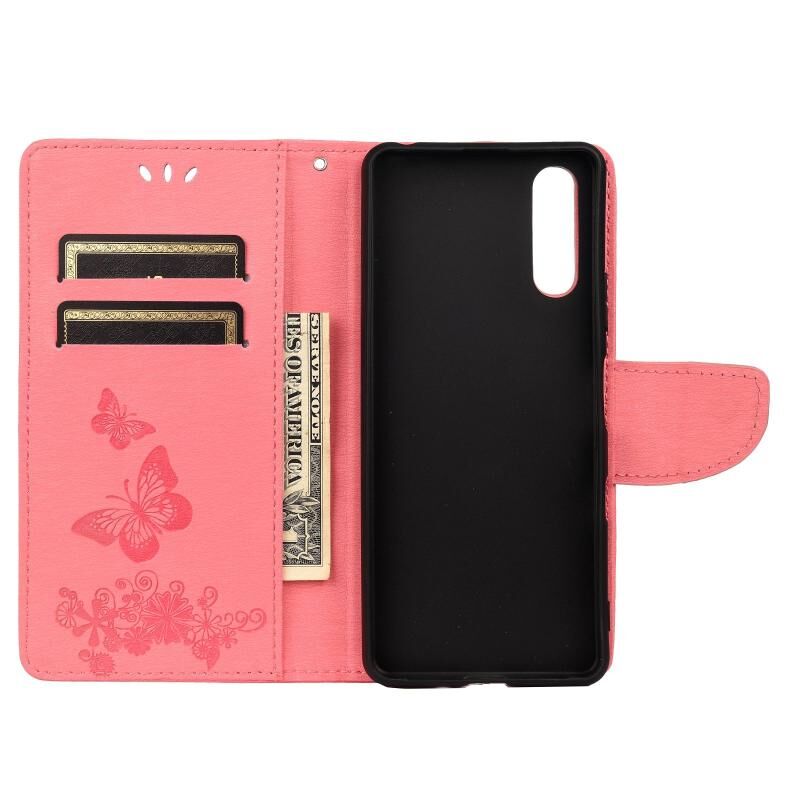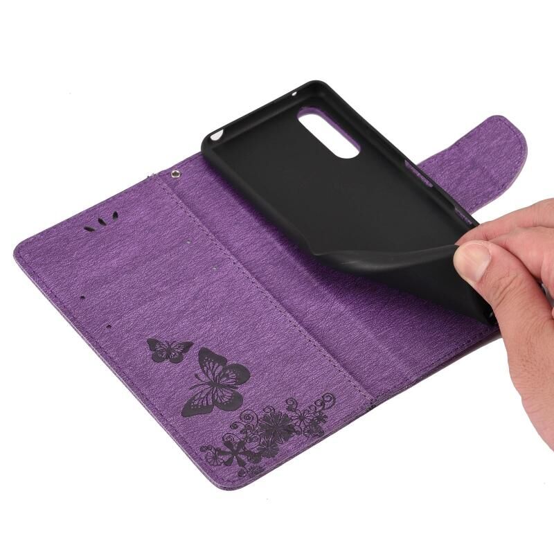 Θήκη οριζόντιας αναδίπλωσης από δέρμα για Sony Xperia 10 III Vintage Embossed Floral Butterfly Pattern με υποδοχή κάρτας & βάση & πορτοφόλι & λουρί (Μαύρο)