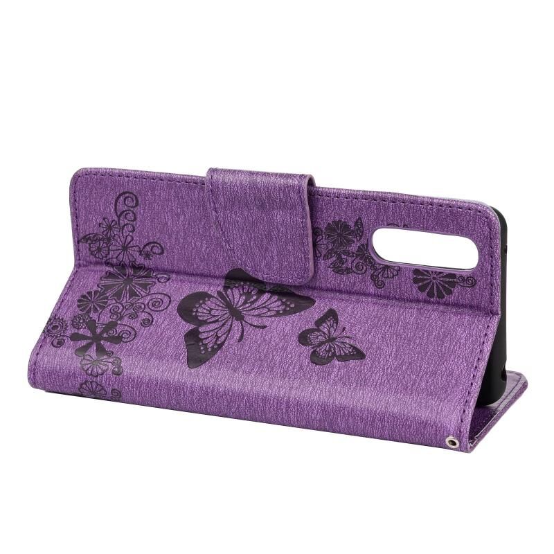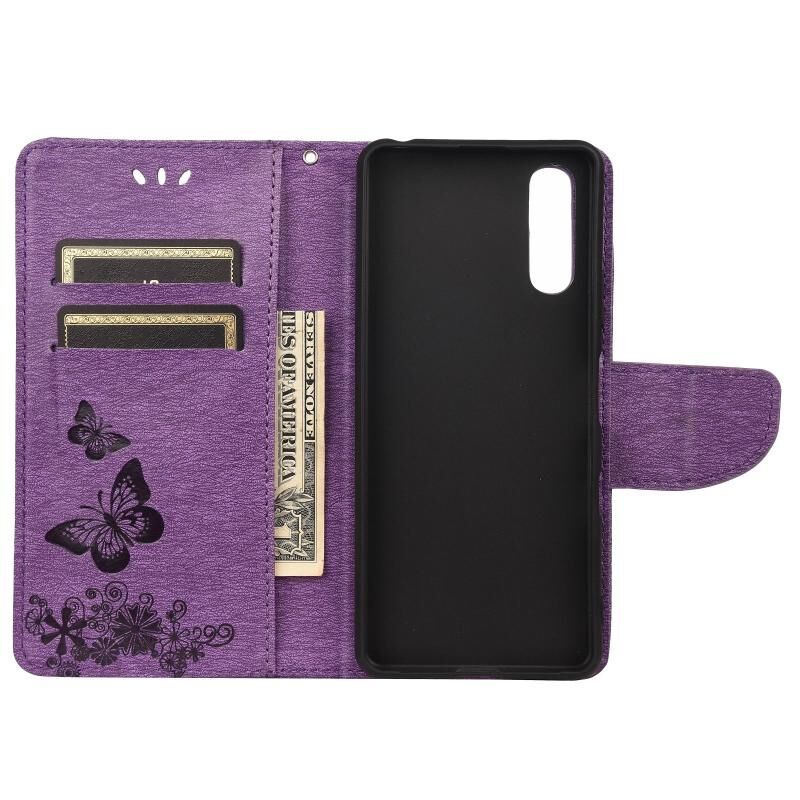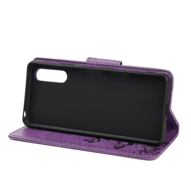 Θήκη οριζόντιας αναδίπλωσης από δέρμα για Sony Xperia 10 III Vintage Embossed Floral Butterfly Pattern με υποδοχή κάρτας & βάση & πορτοφόλι & λουρί (Μαύρο)