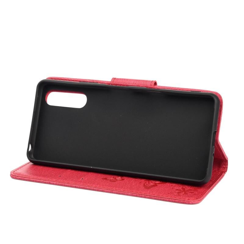 Θήκη οριζόντιας αναδίπλωσης από δέρμα για Sony Xperia 10 III Vintage Embossed Floral Butterfly Pattern με υποδοχή κάρτας & βάση & πορτοφόλι & λουρί (Μαύρο)