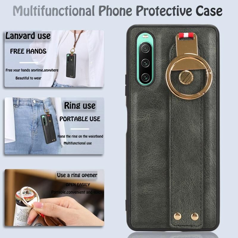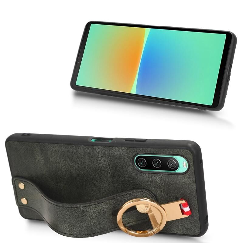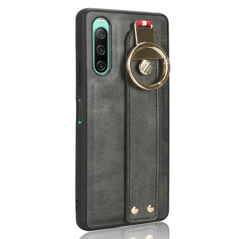Για το Sony Xperia 10 III Wristband δέρμα πίσω θήκη τηλεφώνου (πράσινο)