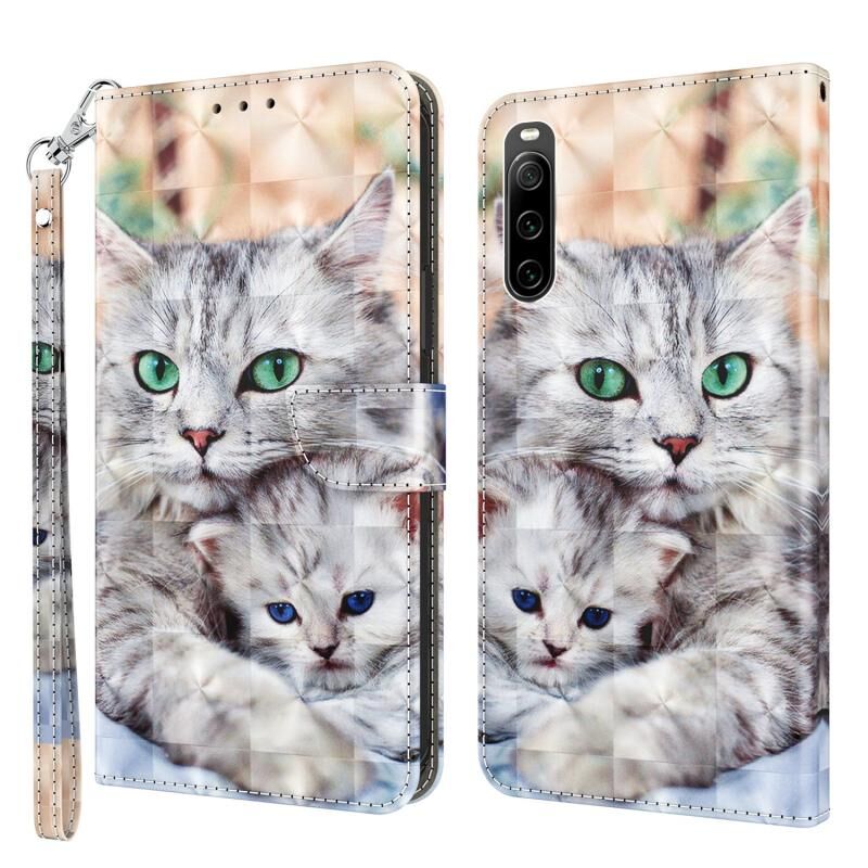 Θήκη τηλεφώνου από δέρμα με τρισδιάστατη ζωγραφική για Sony Xperia 10 IV (Δύο ερωτευμένες γάτες)