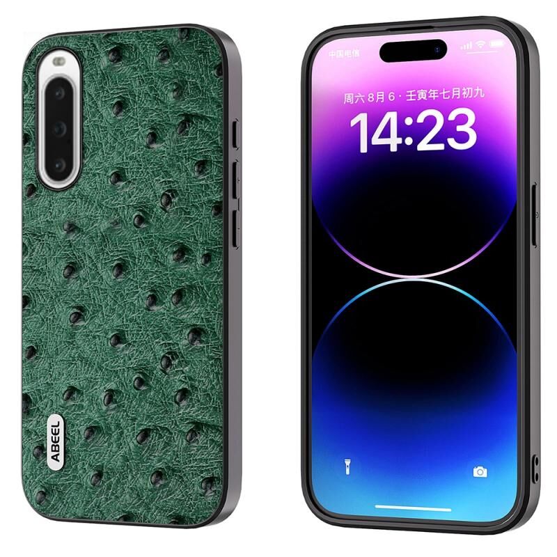 Θήκη τηλεφώνου από γνήσιο δέρμα στρουθοκάμπου για Sony Xperia 10 IV ABEEL (Πράσινο)