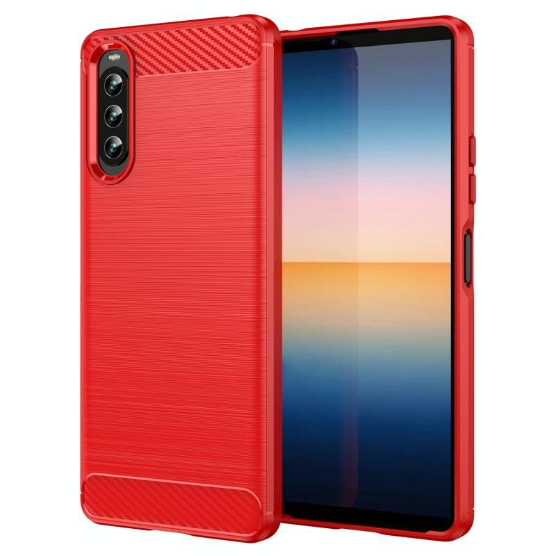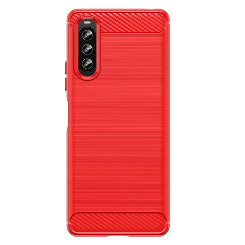 Για Sony Xperia 10 IV βουρτσισμένη υφή Carbon Fiber TPU υπόθεση τηλεφώνου (κόκκινο)