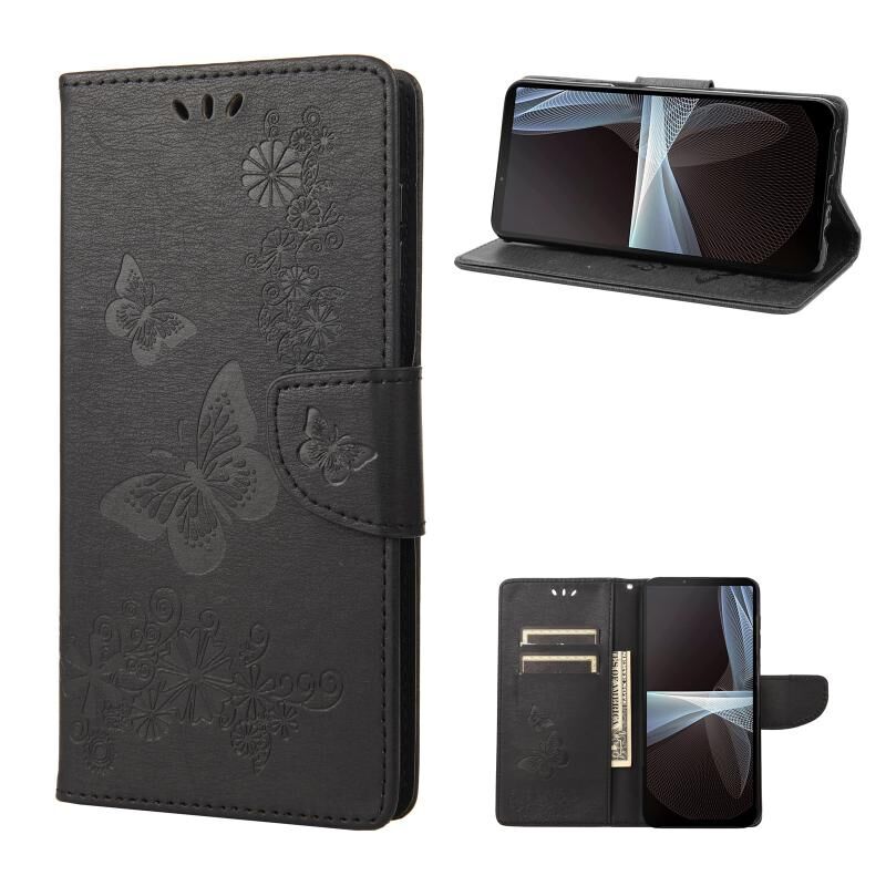 Θήκη τηλεφώνου δέρμα κατακόρυφου ανοίγματος με ανάγλυφο σχέδιο πεταλούδας για Sony Xperia 10 IV (Ροζ)