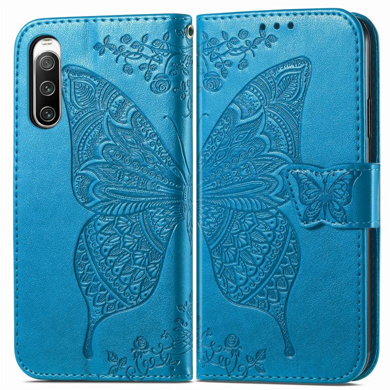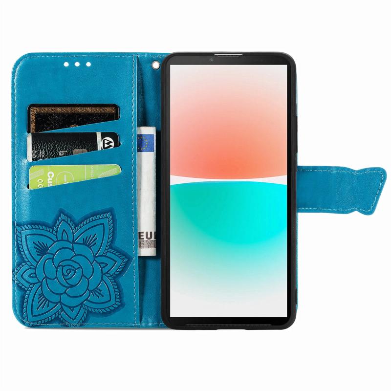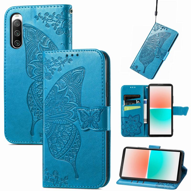 For Sony Xperia 10 IV Butterfly Love Flower Embossed Leather Phone Case(Blue)