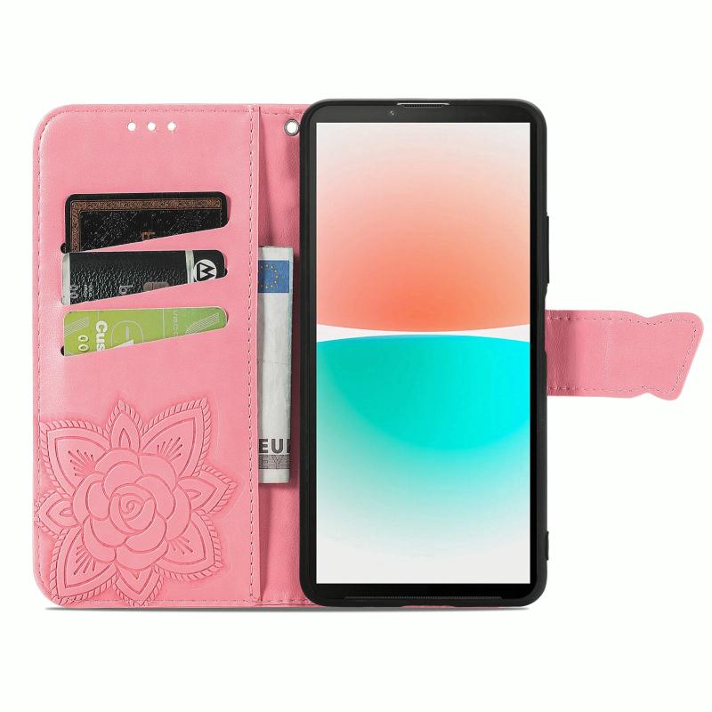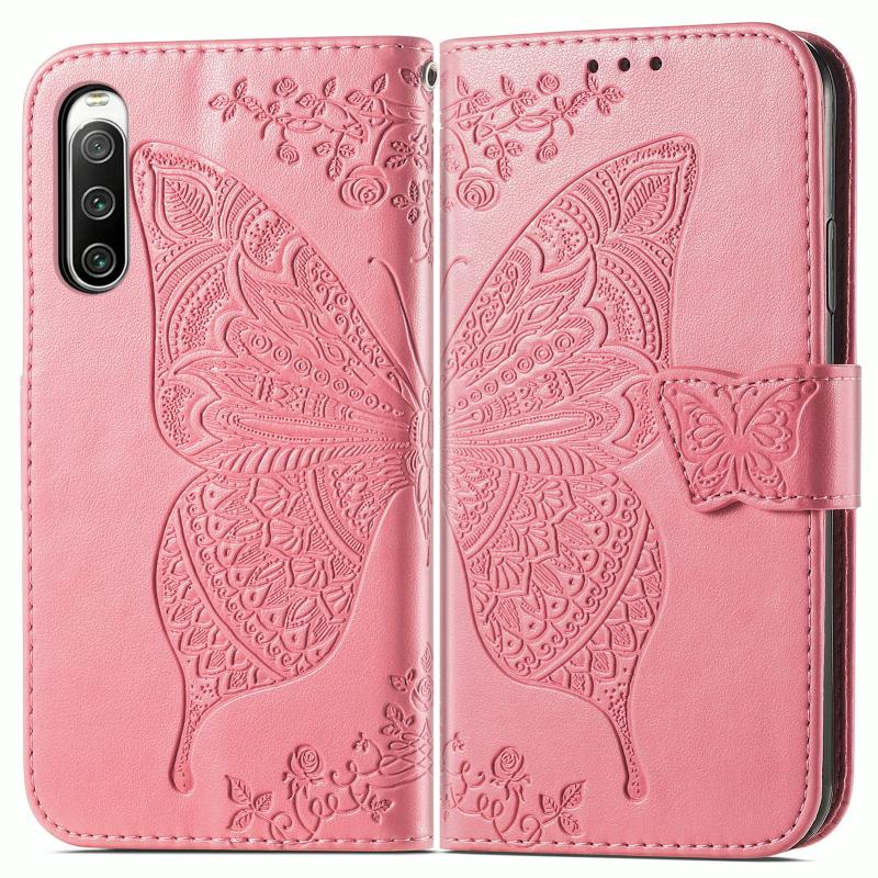 For Sony Xperia 10 IV Butterfly Love Flower Embossed Leather Phone Case(Pink)