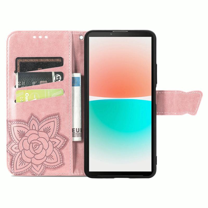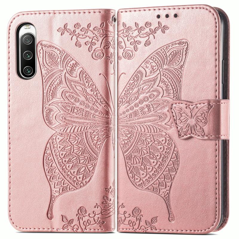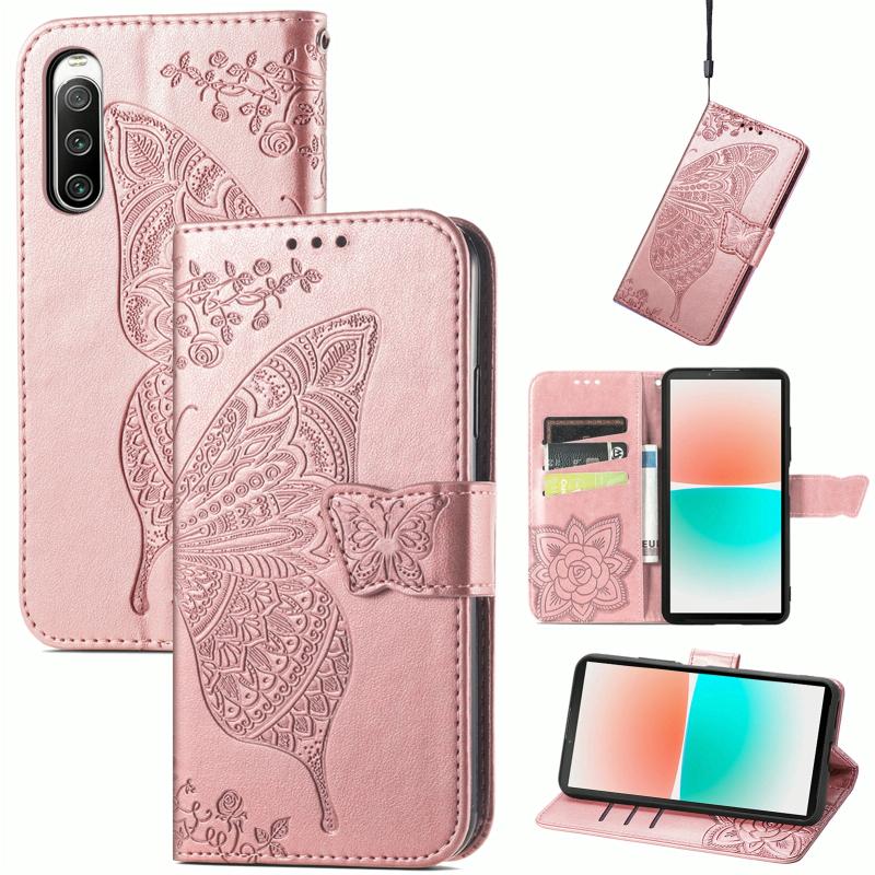 For Sony Xperia 10 IV Butterfly Love Flower Embossed Leather Phone Case(Rose Gold)