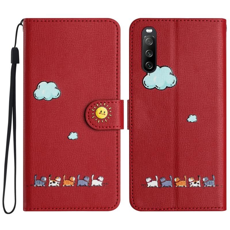 Θήκη τηλεφώνου από δέρμα με σχέδια κινούμενων σχεδίων για Sony Xperia 10 IV (Κόκκινο)