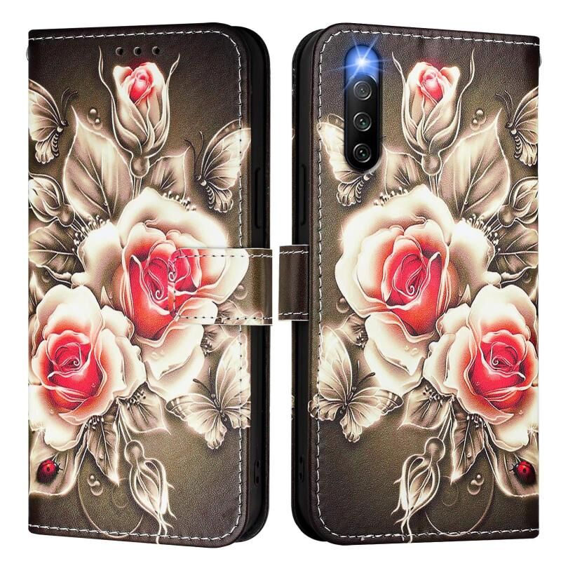 Θήκη τηλεφώνου από δέρμα με απλή ύφανση και πολύχρωμο σχέδιο για Sony Xperia 10 IV (Τριαντάφυλλα σε μαύρο φόντο)