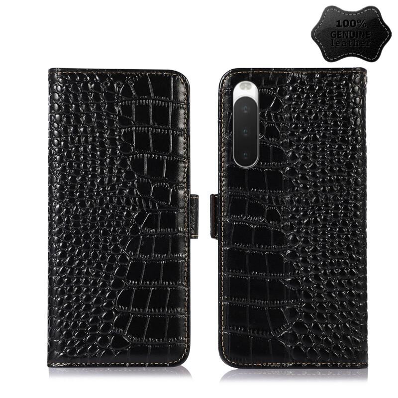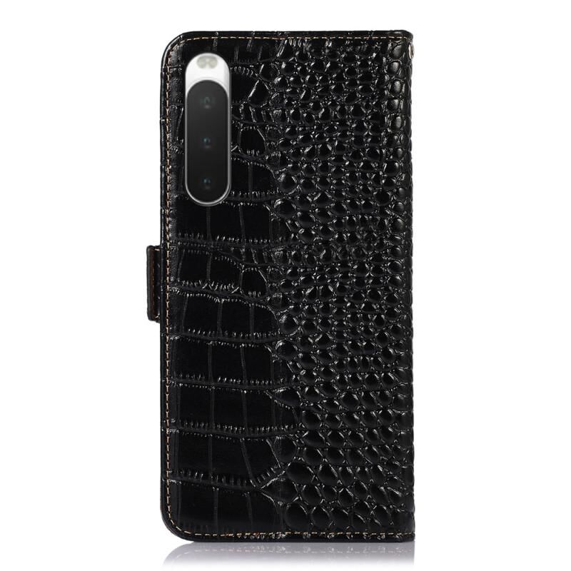 Θήκη τηλεφώνου από γνήσιο δέρμα αγελάδας με επικάλυψη κροκόδειλου για Sony Xperia 10 IV (Μαύρο)