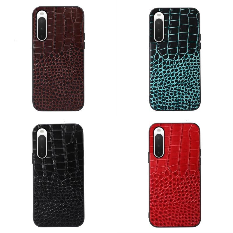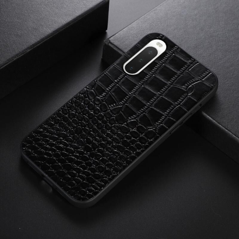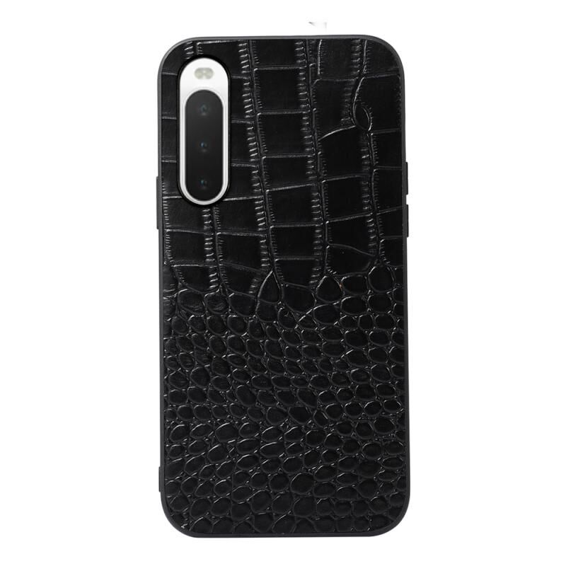 Θήκη τηλεφώνου από γνήσιο δέρμα αγελάδας με επικάλυψη κροκόδειλου για Sony Xperia 10 IV (Μαύρο)