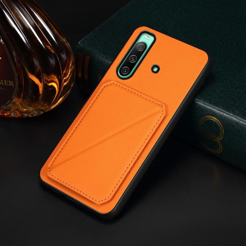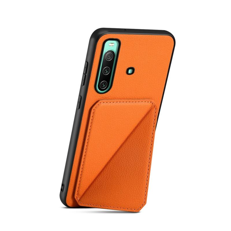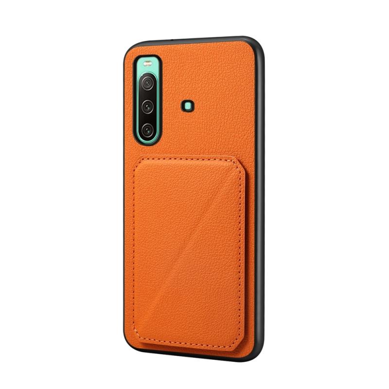 For Sony Xperia 10 IV D04 Calf Texture Dual Card Slot Holder Phone Case(Orange)