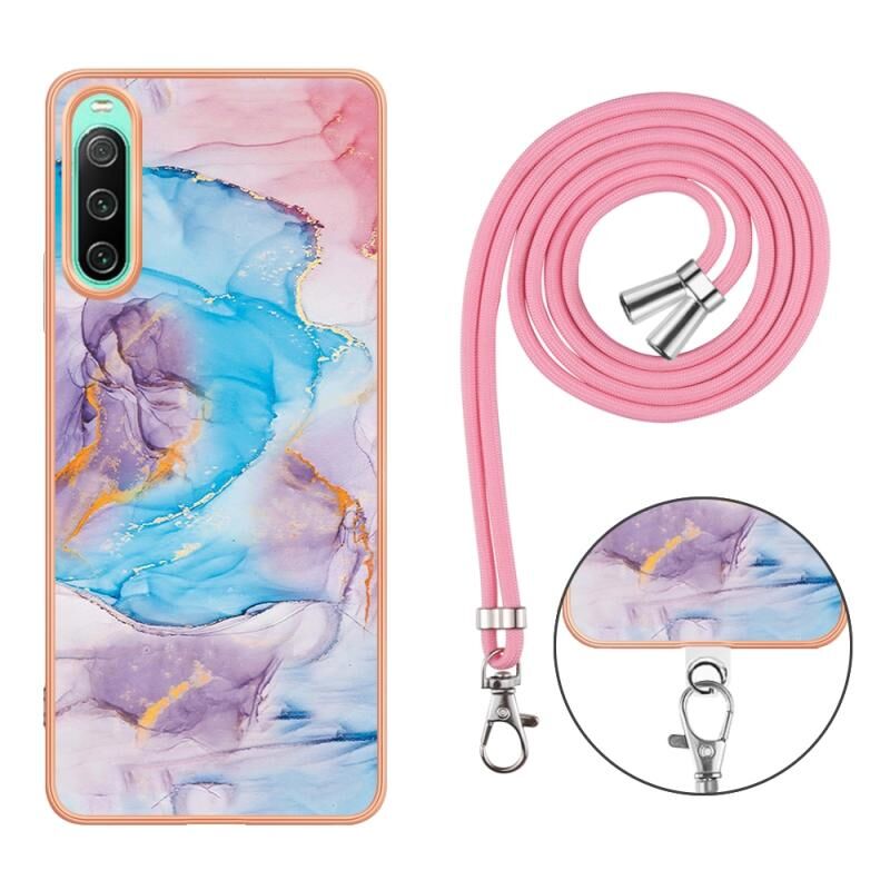 Θήκη τηλεφώνου για Sony Xperia 10 IV με ηλεκτρολυτική επιμετάλλωση IMD TPU με κορδόνι (Ροζ Λέπια)